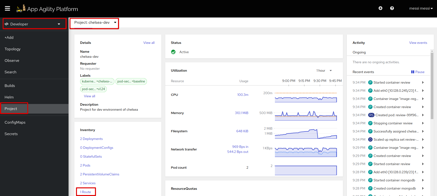 Let's go to the routes resource in your namespace: