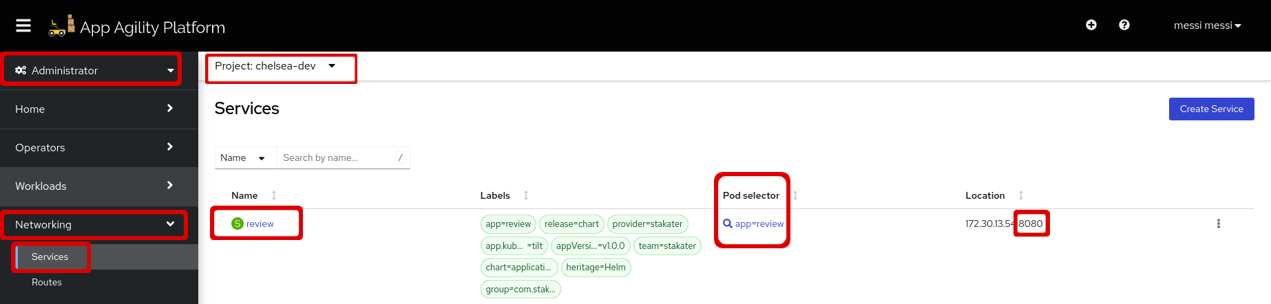 Let's go to the services under the networking section in your namespace