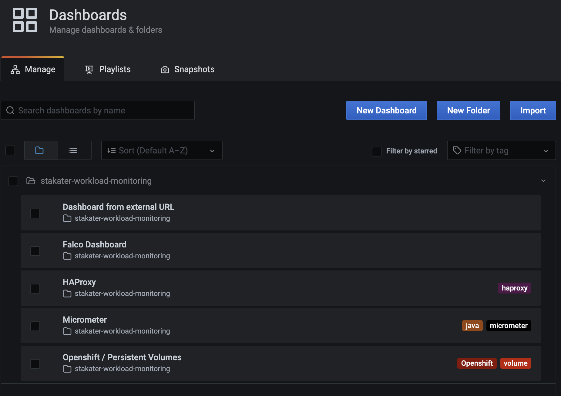 - Grafana should be up and running. You should be able to find it under Workload Monitoring category in your Forecastle link.