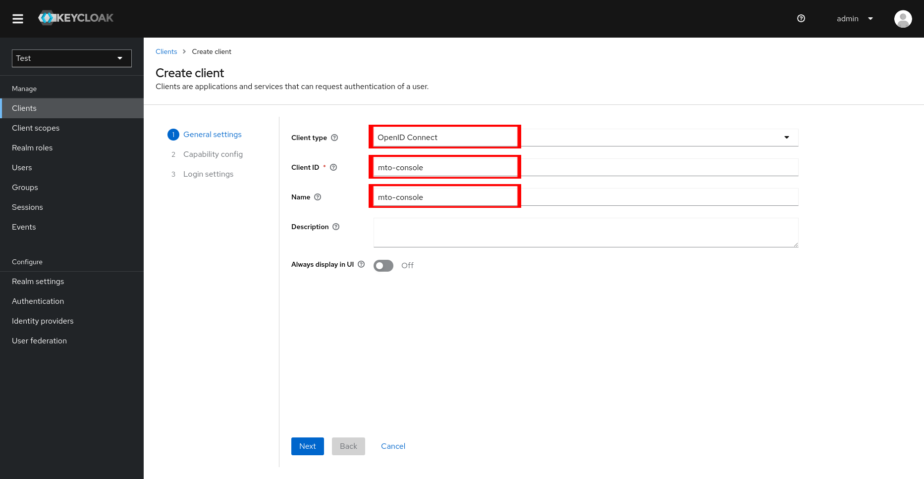 - Now, the MTO Console will be integrated with the external Keycloak instance.