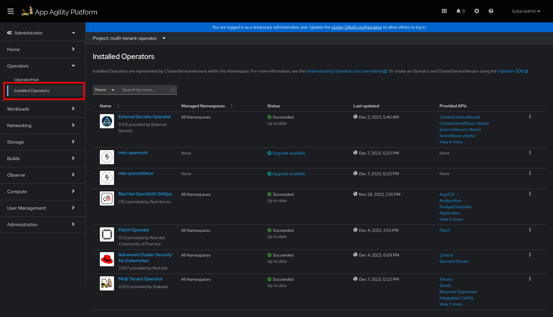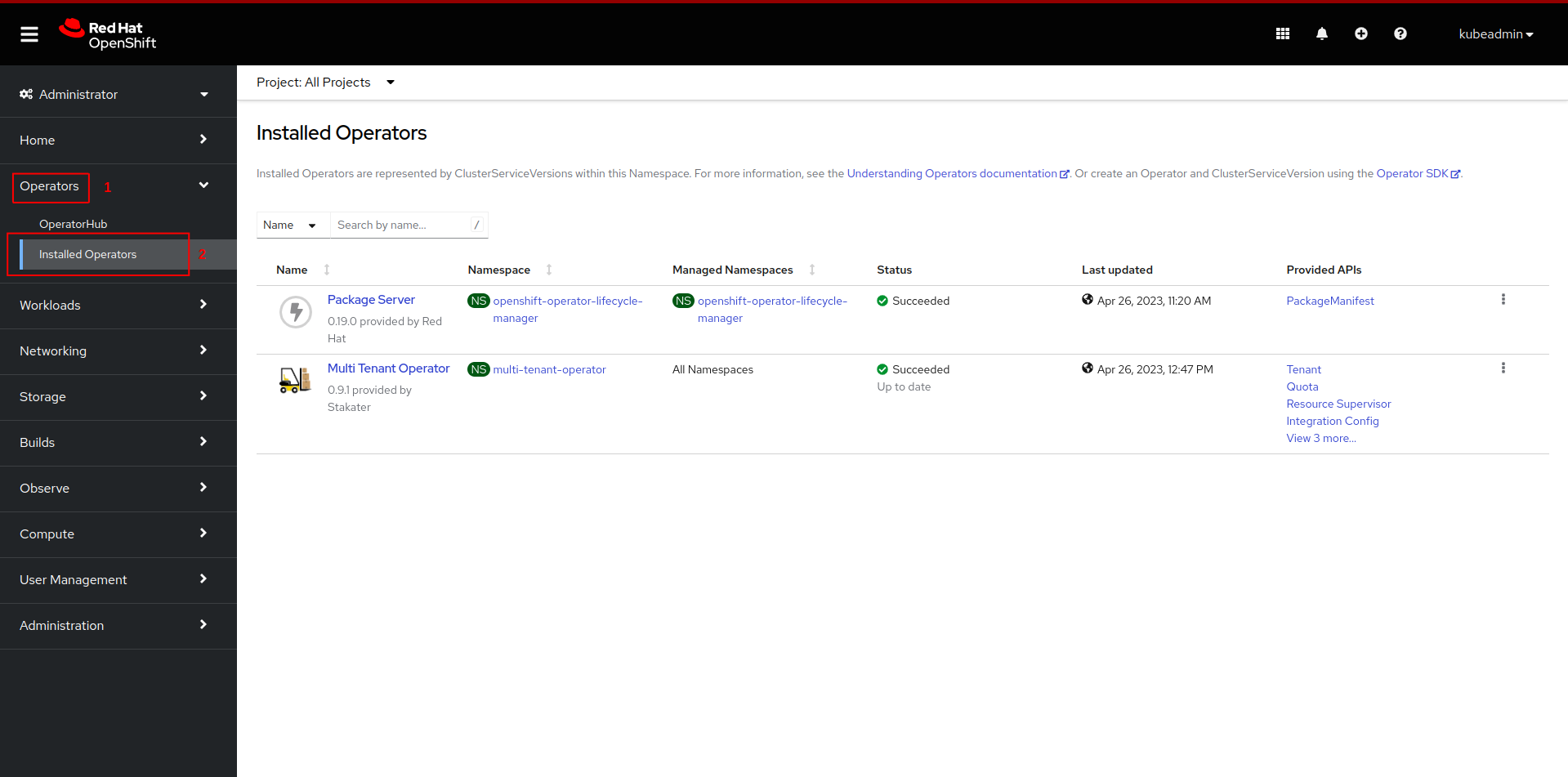 Operators, followed byInstalled Operatorsfrom the side menu.
