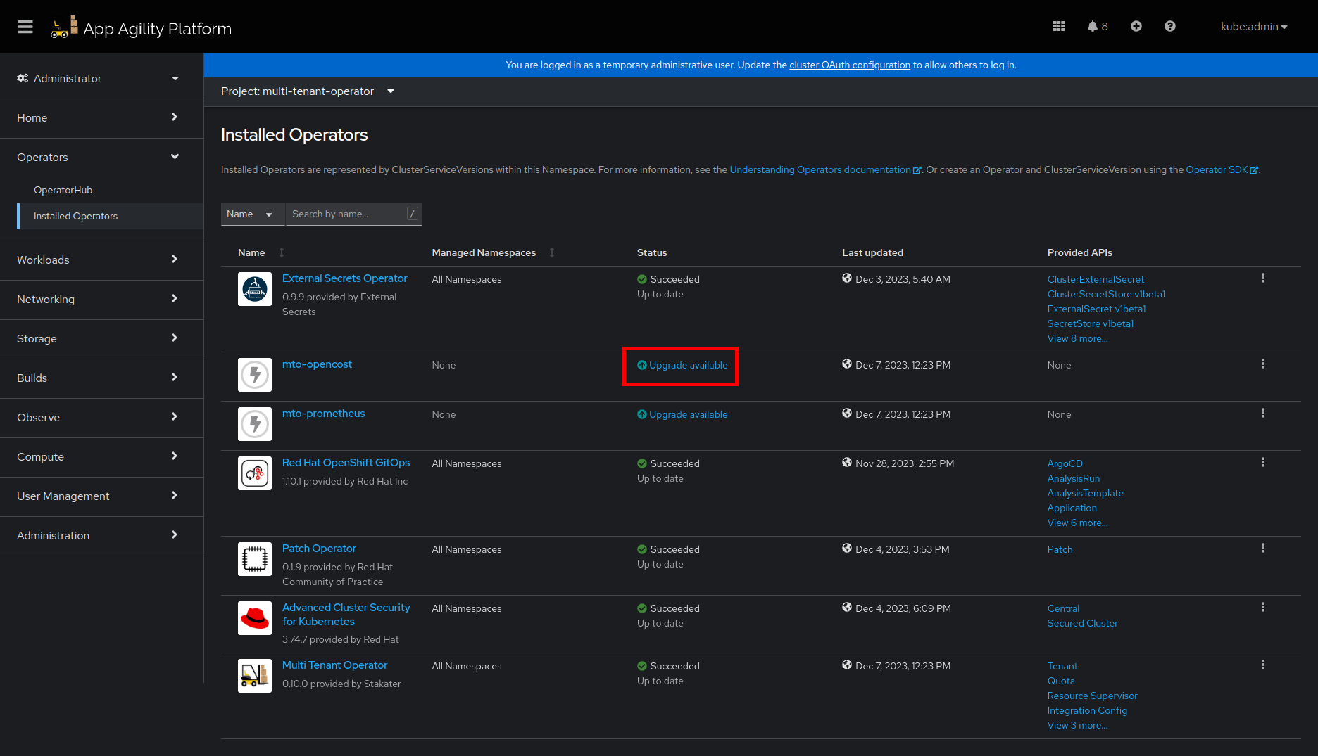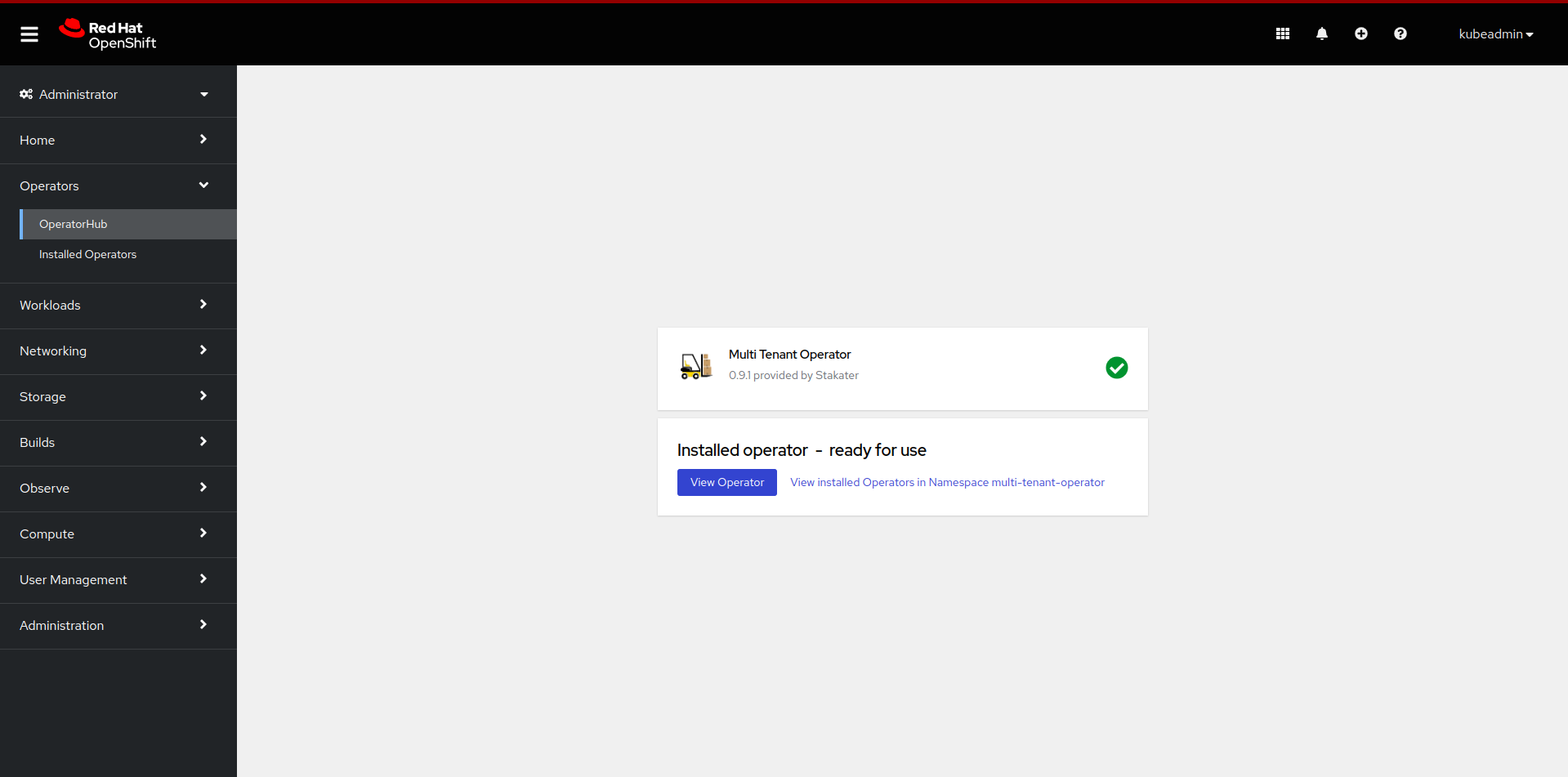 - Once successfully installed, MTO will be ready to enforce multi-tenancy in your cluster