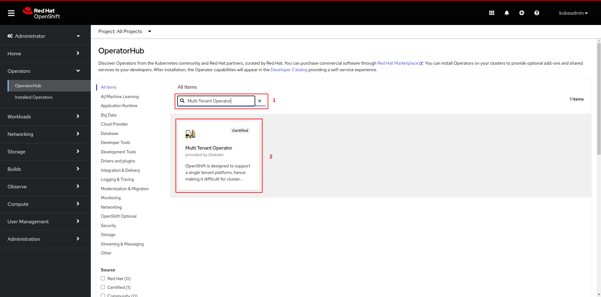 MTO is RedHat Certified operator available on the Red Hat MarketPlace.