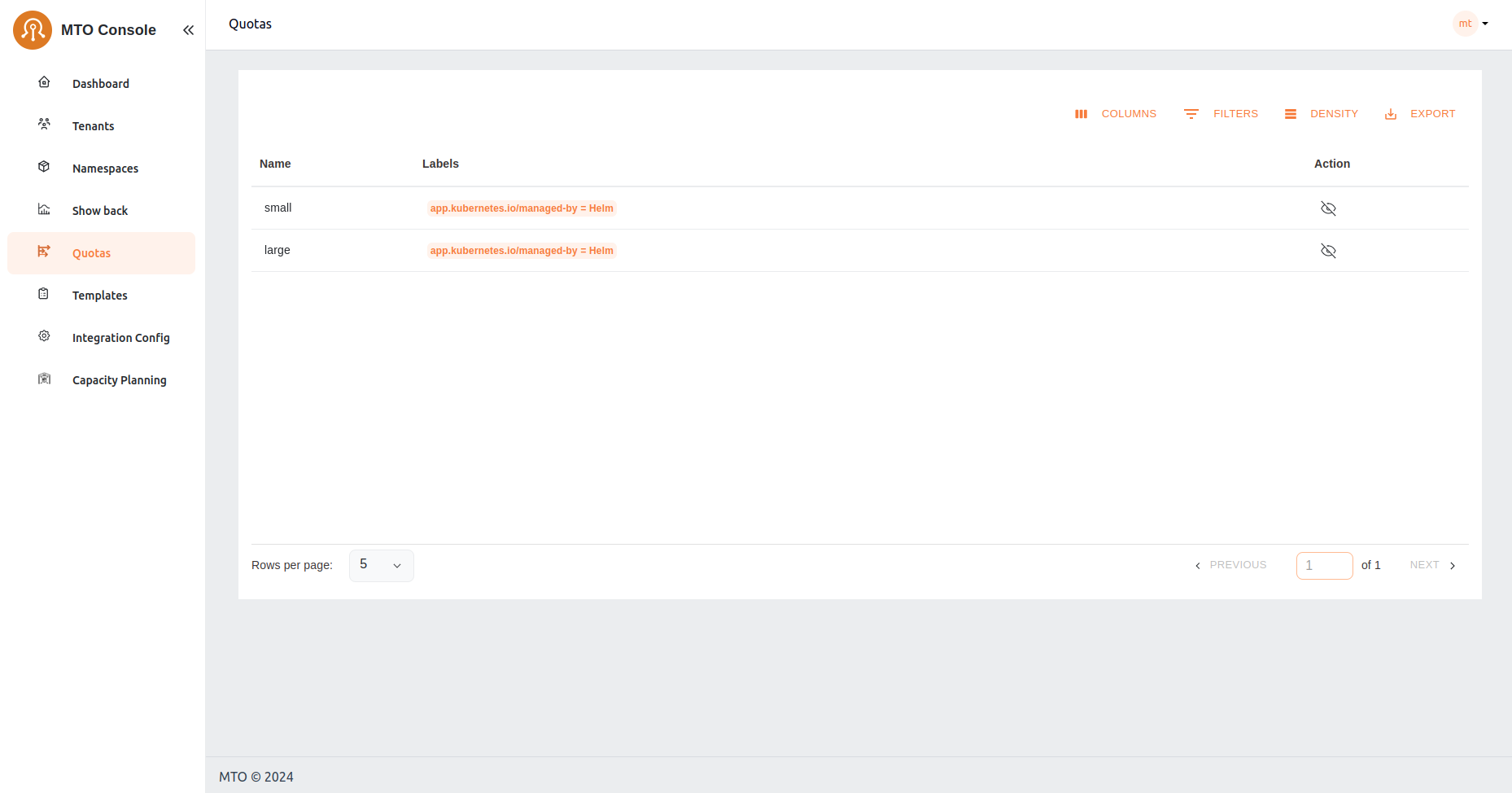 MTO's Quotas are crucial for managing resource allocation. In this section, administrators can assess the quotas assigned to each tenant, ensuring a balanced distribution of resources in line with operational requirements.